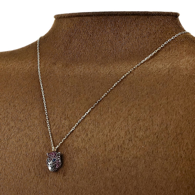 GUCCI グッチ ネックレス K18 ル マルシェ デ メルヴェイユ キャット モチーフ ペンダント ゴールド×ピンク系 459192 J6380 8266
