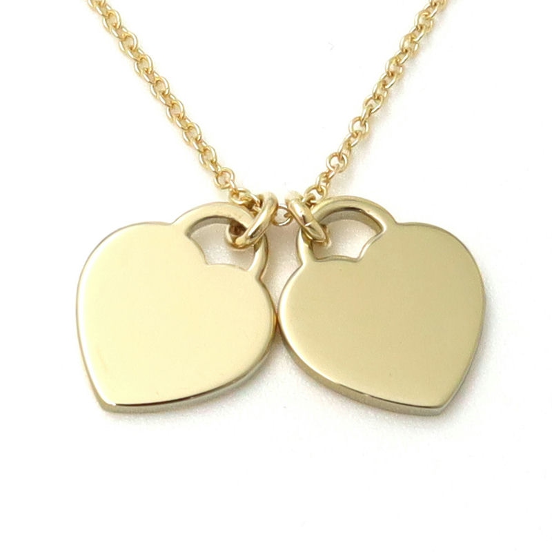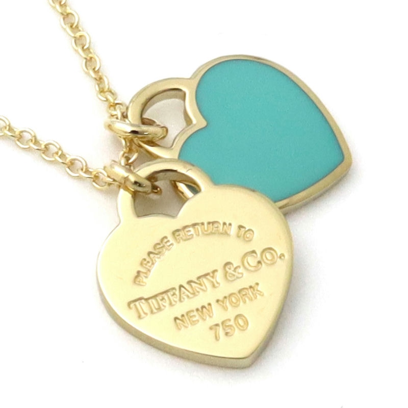 Tiffany ティファニー ネックレス リターン トゥ ティファニー K18 YG RTT ミニ ダブル ハートタグ ペンダント イエローゴールド×ブルーグリーン 67800974