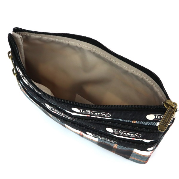 LeSportsac レスポートサック ポーチ 3-ZIP COSMETIC チェック柄 ベージュ系×ブラック 7158 F430