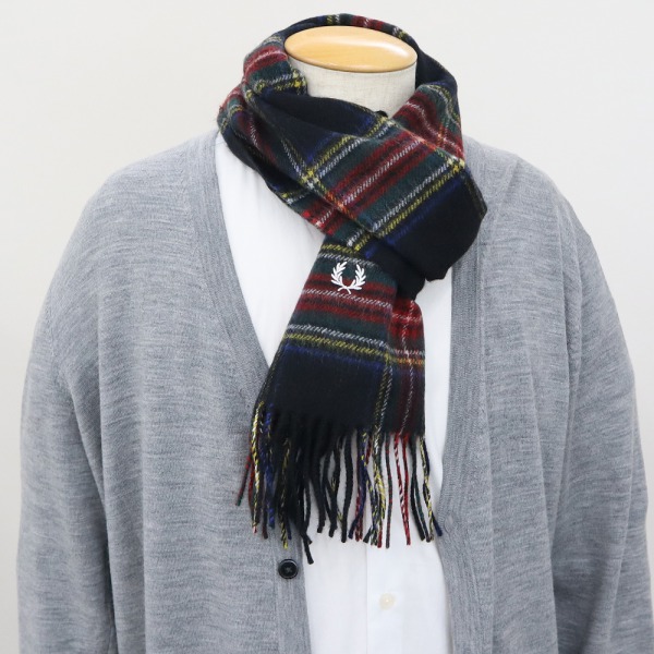 FRED PERRY フレッドペリー マフラー タータンチェック ウールマフラー ブラック系 C4113 102 BLACK