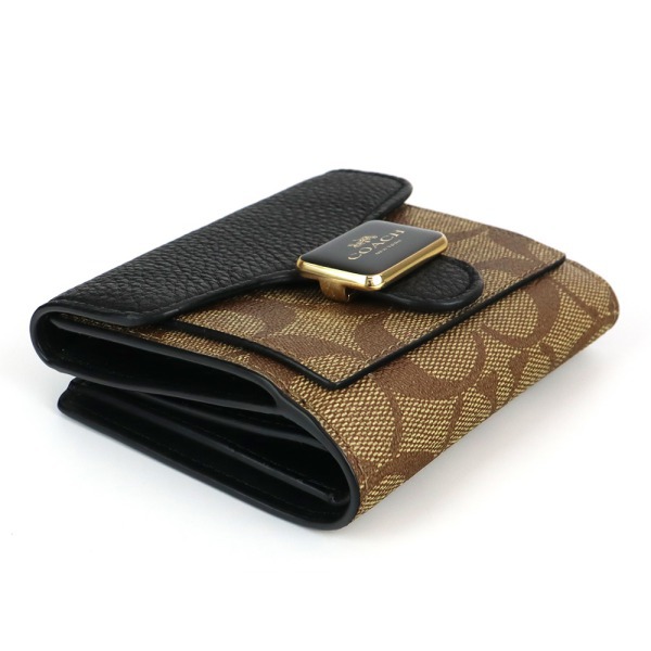 COACH コーチ 二つ折り財布 シグネチャー ベージュ×ブラック C7805 IMLOV