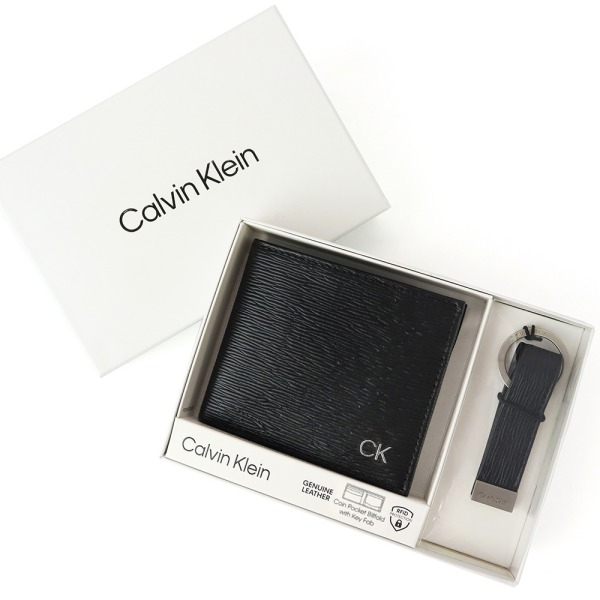 Calvin Klein カルバンクライン 二つ折り財布 レザー キーリングセット ブラック 31CK330016