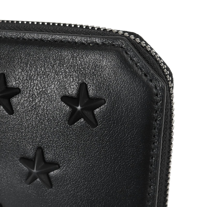 JIMMY CHOO ジミーチュウ ラウンドファスナー長財布 スタースタッズ オールブラック CARNABYS OAJ 0050