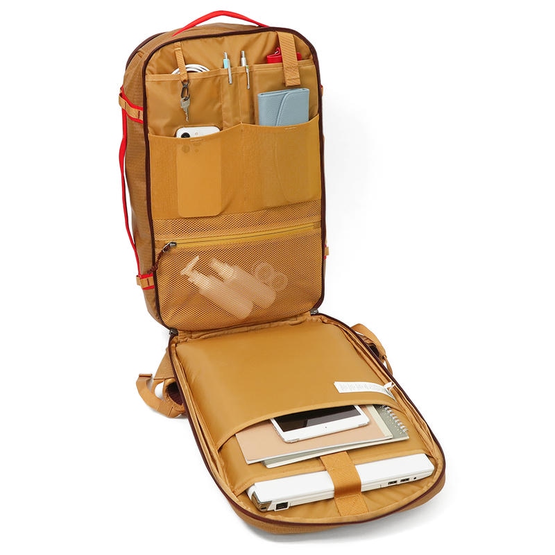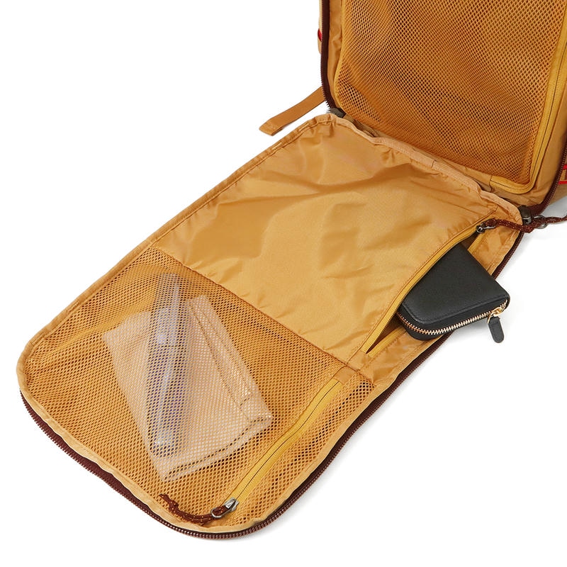 | 仕様 | 外側ファスナーポケット×2、内側ファスナーポケット×1、内側オープンポケット×2、外側サイドメッシュオープンポケット×1、ペンホルダー×2、内側メッシュファスナーポケット×3、内側メッシュオープンポケット×2、内側マジックテープポケット×2、キーフック×1、ファスナー開閉、ショルダー太さ 約7〜2cm、持ち手太さ 約2.5cm、ショルダー脱着 不可、ショルダーストラップ×1(全長 約79.5〜117.5cm、幅 約6〜2.5cm)、脱着可 |