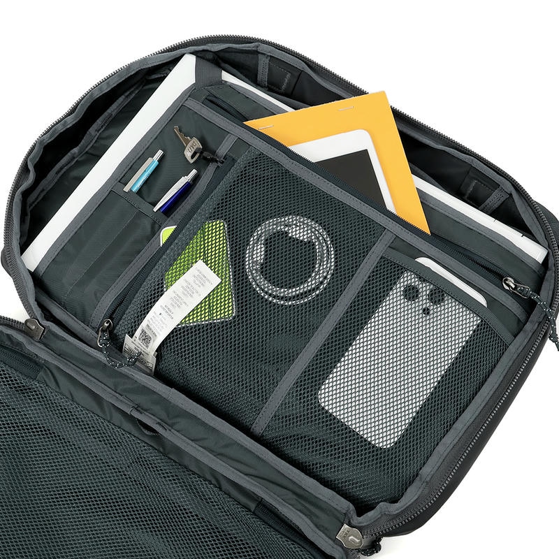 | 仕様 | 外側ファスナーポケット×1、内側ファスナーポケット×1、ペンホルダー×2、内側メッシュファスナーポケット×2、内側メッシュオープンポケット×1、ファイルポケット×1、キーフック×1、ファスナー開閉、ショルダー太さ 約6〜2cm、持ち手太さ 約2.5cm、ショルダー脱着 不可、ショルダーストラップ×1(全長 約95〜134cm、幅 約4〜2cm)、脱着不可、キャリーオン対応 |